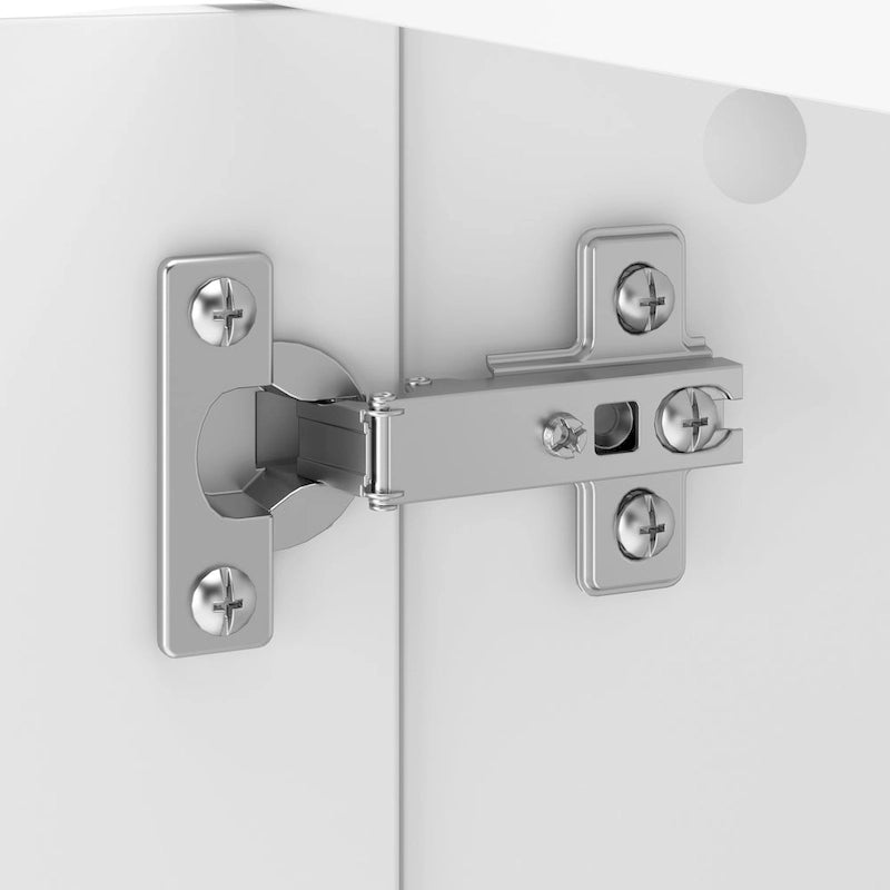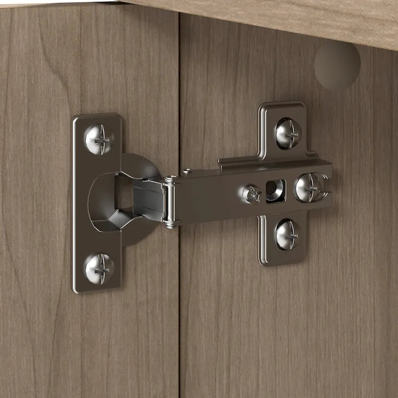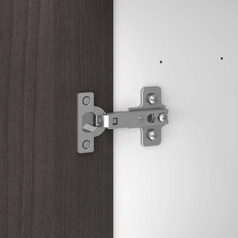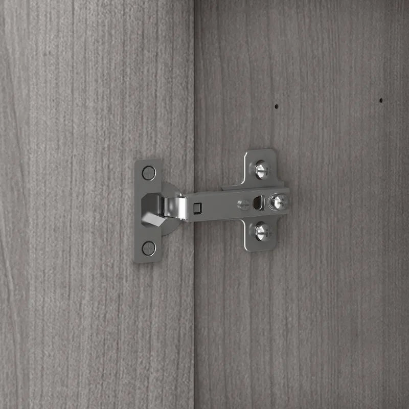 The vertical storage cabinet includes an adjustable shelf to accommodate items of various sizes.
