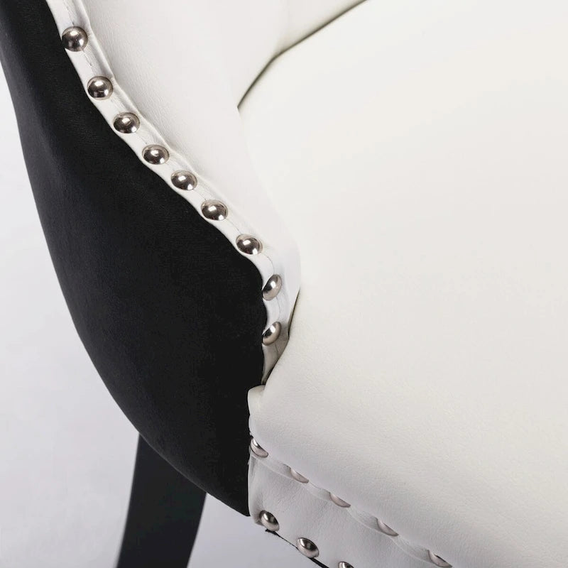 Upgrade your dining space with this set of 2 upholstered accent chairs. With a striking combination of transitional and Hollywood glam styles, these chairs feature PU Leather upholstery and velvet back that is comfortable and durable. The high and embraced backrest provides ergonomic support while the nailhead trim decorative add an extra design element. Sold as a set of 2, these chairs are perfect for various occasions and are easy to assemble.