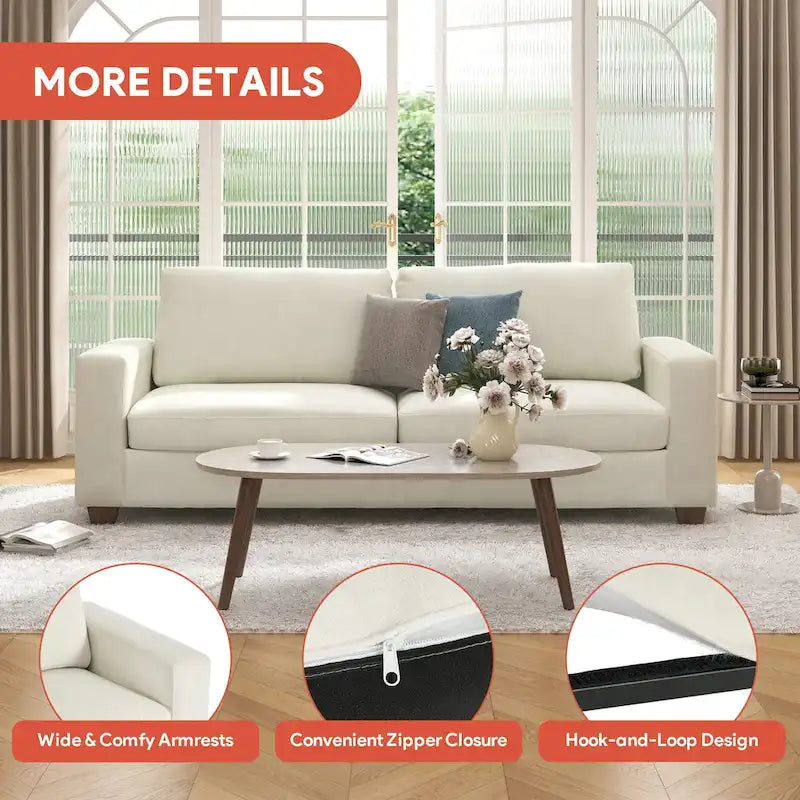 86.6" Wide 3-Seater Chenille Sofa, Supports 900 lbs, Removable Covers, 350GSM Fabric, Includes Pillows