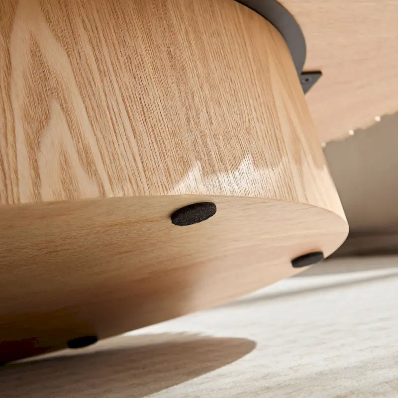 [Sturdy Pedestal Base] The table stands on a sturdy MDF base, providing reliable support and stability. The pedestal design not only ensures durability but also adds a distinctive element to the table's overall look.