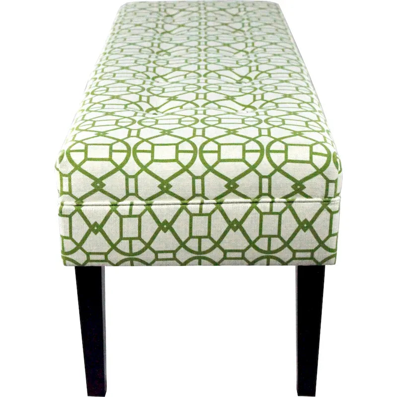 This beautifully designed bench features geometric patterned fabric upholstery, adding a stylish and trendy touch to any room. Elegant espresso-colored legs provide sturdy support and enhance the overall aesthetic of the bench.