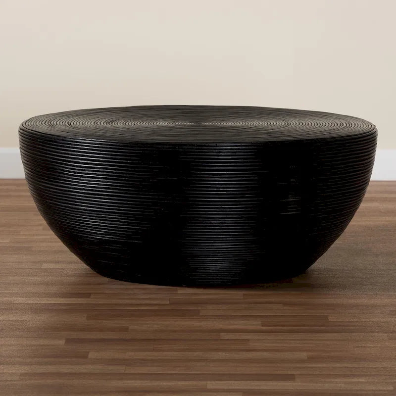 Tokyo Laminated Natural Rattan Coffee Table - Handmade Drum-Shaped Coffee Table for Living Room, Coastal Bohemian Style Furniture