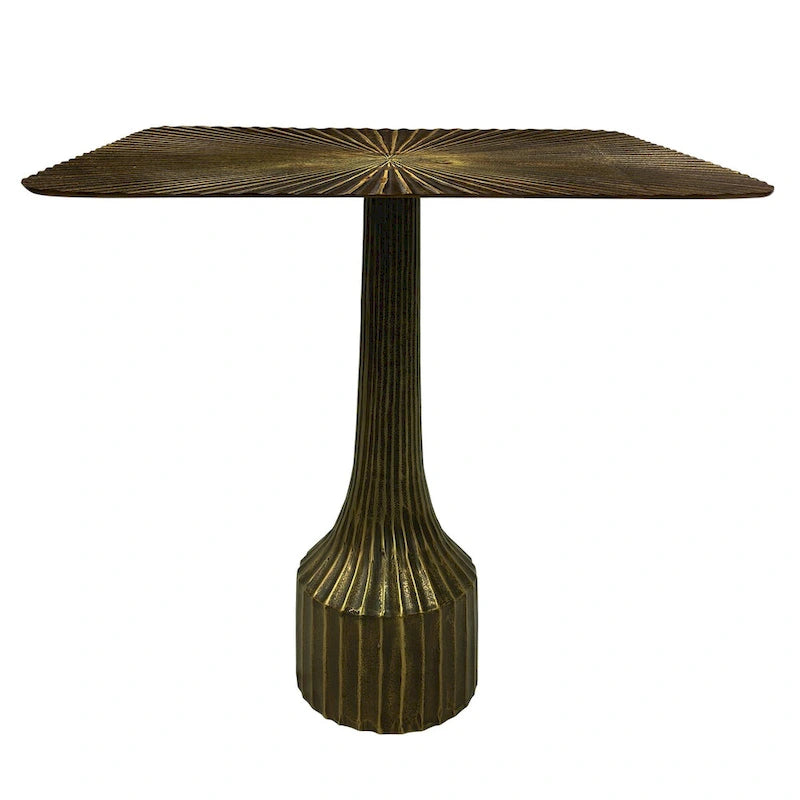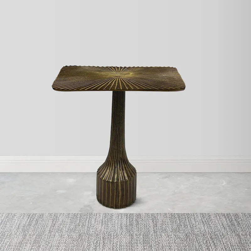 Elegant and eye catching in design with a simple silhouette, this bold decorative side end table is made from solid aluminum cast for a lightweight yet durable design. Its fluted support base is meticulously crafted, and its large square top with rounded edges is great for perching a drink or for displaying anything from candles to fresh cut flowers in a glass vase next to your favorite chair. Use this lovely end table to serve a couple of drinks on coasters to guests, act as a decadent plant stand, or simply to bring more decorative refinement to your home. This is the ideal end table for those seeking modern design with the allure of seamless perfection and classical simplicity.