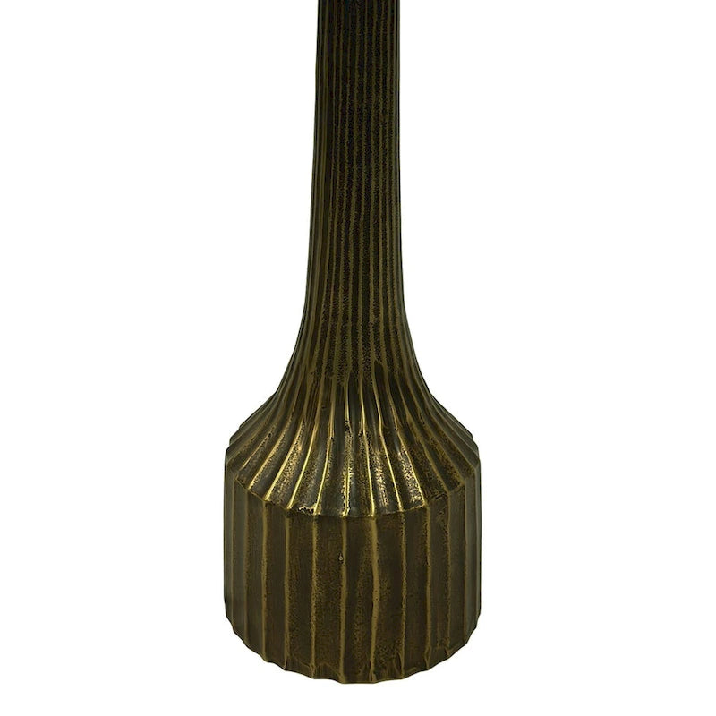 18 Inch Side End Table, Decorative Fluted Base, Square Top, Antique Brass Finish