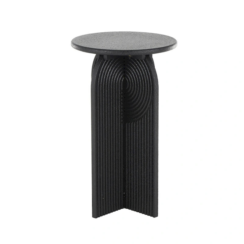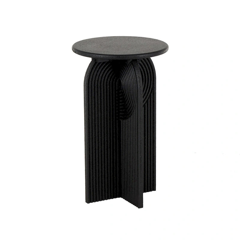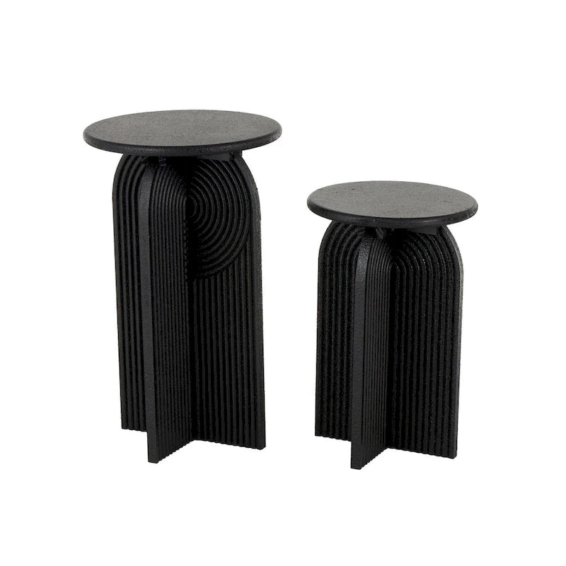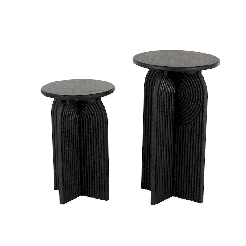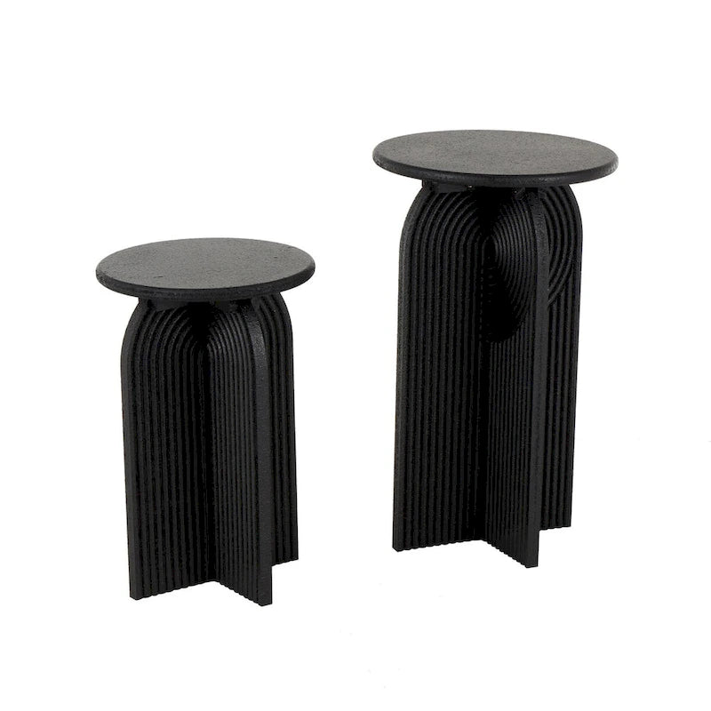 - Crafted from fir and MDF materials, this black side end accent table set offers superior durability and strength