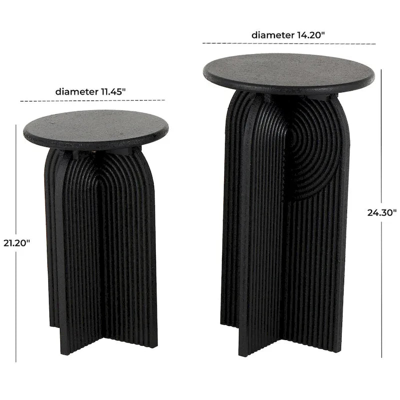 - Each black wood accent table measures 14.15L x 14.20W x 24.30H , 11.45L x 11.45W x 21.20H inches, and collectively weighs 22.77 lbs