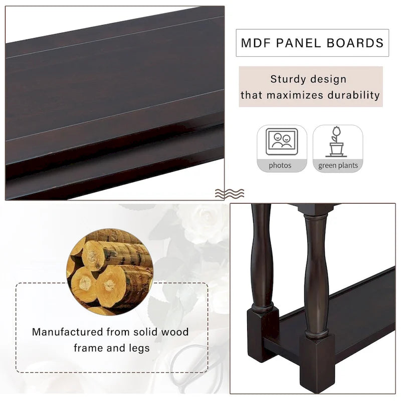 This console table features an extra-long and thick classic Mediterranean design, adding a touch of elegance to your space and providing ample room to display and store your belongings.