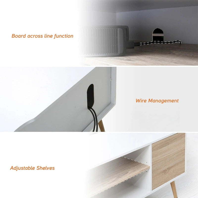 - Powerful Cable Management Additional groove design on the top of the back, which not only leaves enough space for the power cord, but also ensures that the TV cabinet can fit the wall well. Basic long cable holes design allow the disorganized wires to be placed in order.